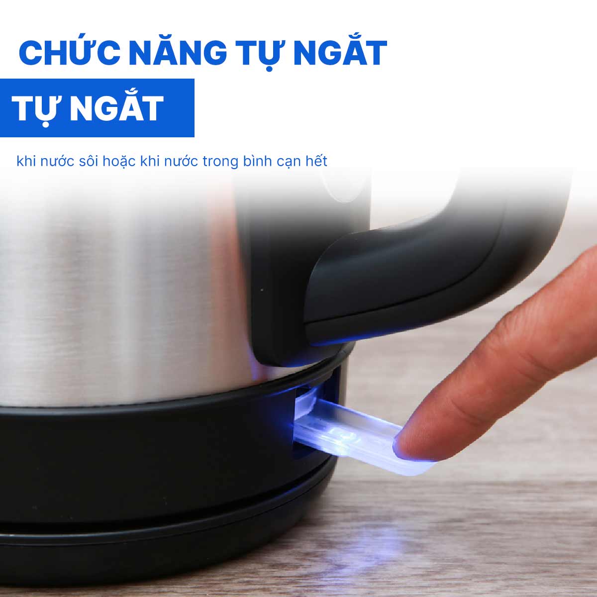 Sản phẩm được trang bị hệ thống điều khiển Strix chuẩn Vương quốc Anh, mang đến cơ chế bảo vệ đa tầng thông minh. Ấm sẽ tự động ngắt điện khi nước sôi hoặc khi được nhấc khỏi đế, ngăn chặn nguy cơ quá nhiệt, bảo vệ tối đa cho cả người dùng lẫn thiết bị.
