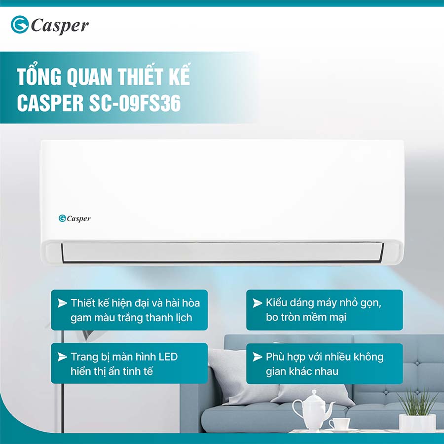 Sự kết hợp giữa khả năng làm lạnh tức thì và độ êm ái khi hoạt động giúp Casper SC-09FS36 trở thành lựa chọn hoàn hảo cho những ai đang tìm kiếm một không gian sống dễ chịu, thư giãn và hiện đại nơi bạn có thể nghỉ ngơi, đọc sách, làm việc hay thư giãn sau một ngày dài mà không bị ảnh hưởng bởi cái nóng hay tiếng ồn.