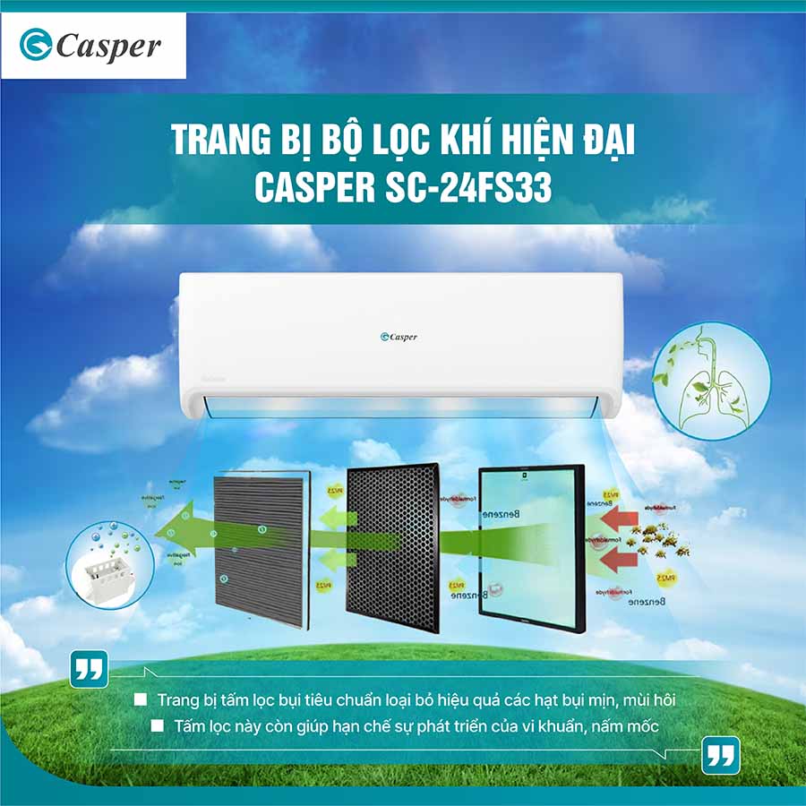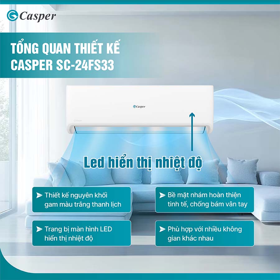 Với sự phát triển không ngừng của công nghệ, điều hòa không chỉ là thiết bị làm mát, mà còn mang lại sự tiện nghi và chăm sóc sức khỏe cho người sử dụng. Điều hòa Casper SC-24FS33, với công suất 2.5 HP và thiết kế hiện đại, là sự lựa chọn lý tưởng cho không gian sống của bạn. Sản phẩm không chỉ đảm bảo hiệu suất làm mát nhanh chóng mà còn tiết kiệm điện năng, bảo vệ sức khỏe với các tính năng thông minh như cảm biến iFeel và hệ thống tự làm sạch dàn lạnh iClean. Hãy cùng tìm hiểu chi tiết về những ưu điểm vượt trội của chiếc điều hòa này qua bài viết dưới nhé.