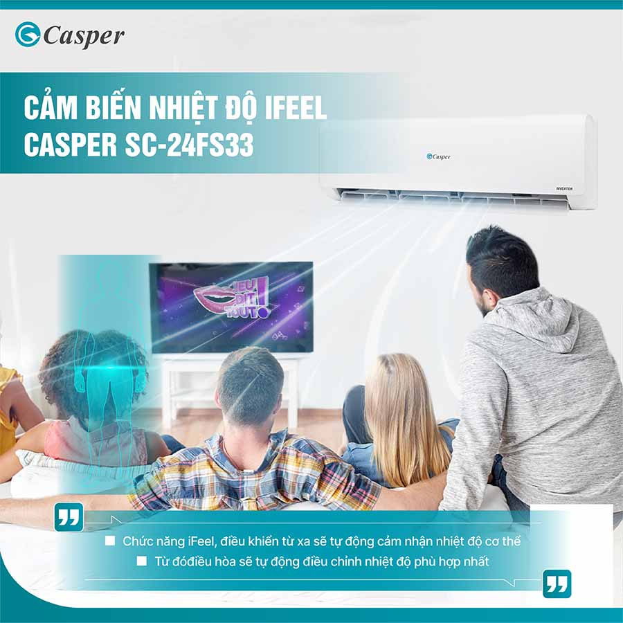 Ngoài ra, tính năng này còn giúp tiết kiệm điện năng hiệu quả hơn do máy không cần hoạt động quá mức cần thiết. Có thể nói, cảm biến iFeel là một điểm cộng lớn về mặt tối ưu trải nghiệm cá nhân hóa và chăm sóc sức khỏe người dùng trên chiếc điều hòa Casper SC-24FS33.