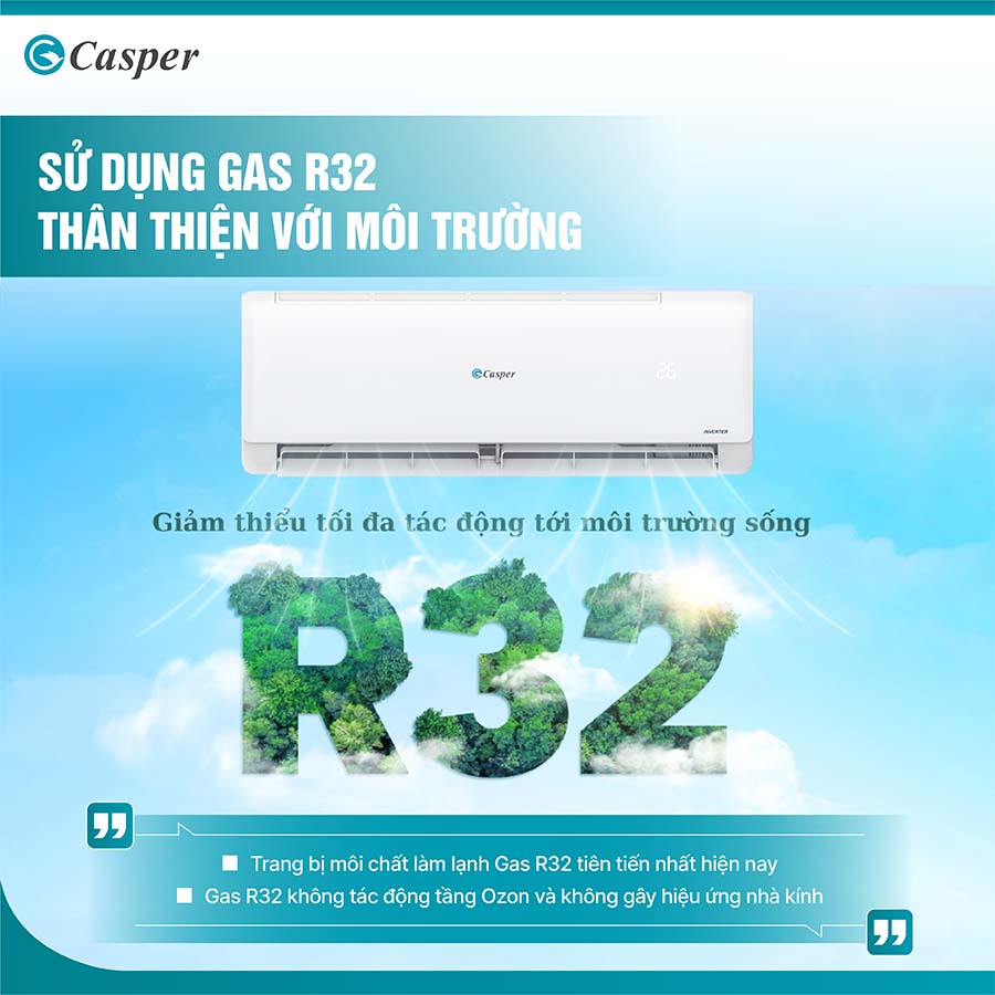 Việc sử dụng R32 không chỉ thể hiện cam kết của Casper đối với chất lượng sản phẩm, mà còn là bước tiến trong việc hướng đến cuộc sống xanh – sạch – bền vững cho người tiêu dùng.