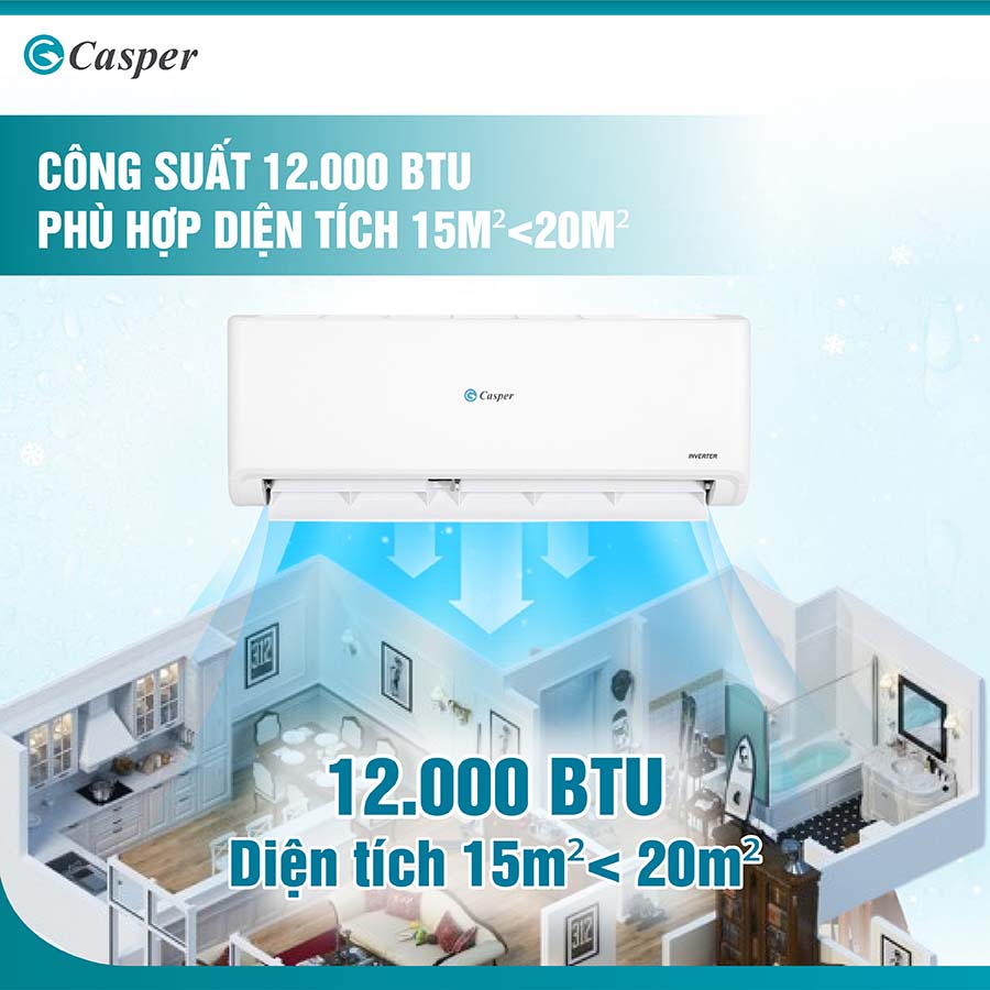 Máy lạnh Casper GC-12IS35 được trang bị công suất 1.5 HP, là lựa chọn lý tưởng cho các không gian có diện tích từ 15-20 m². Với công suất này, máy có khả năng làm mát nhanh chóng và hiệu quả, đảm bảo không gian sống của bạn luôn thoải mái và dễ chịu ngay cả trong những ngày hè oi bức.