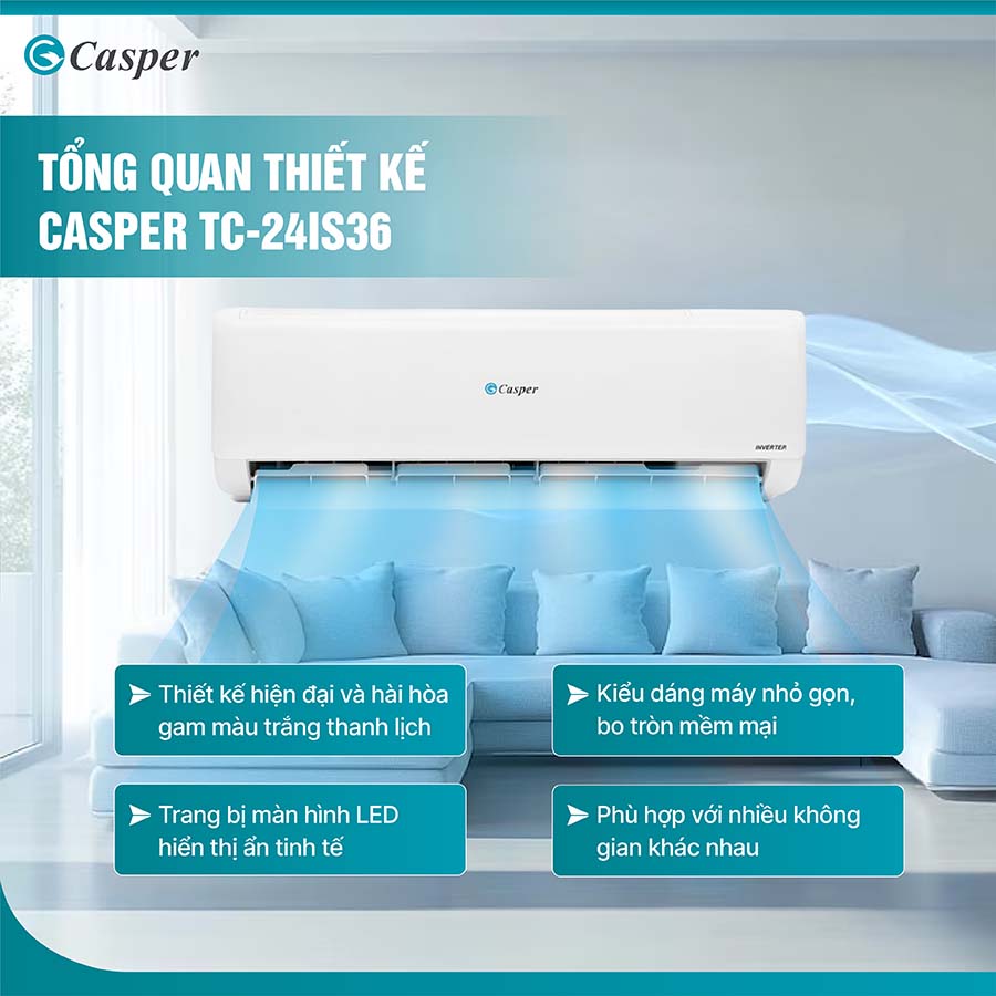 Với công nghệ tiết kiệm điện này, bạn có thể hoàn toàn yên tâm khi sử dụng điều hòa Casper TC-24IS36 mà không lo tốn quá nhiều tiền cho hóa đơn điện. Đây là lựa chọn lý tưởng cho những ai muốn vừa tận hưởng không gian mát lạnh, vừa tiết kiệm chi phí năng lượng trong suốt quá trình sử dụng.