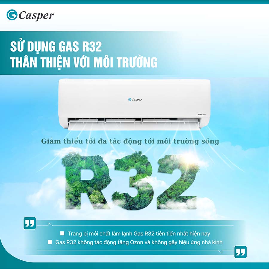 Đặc biệt, Gas R32 không gây ảnh hưởng đến tầng ozon như các loại gas cũ, giúp giảm thiểu tác động xấu đến môi trường và bảo vệ hành tinh của chúng ta. Việc sử dụng Gas R32 trong điều hòa Casper TC-24IS36 không chỉ là sự lựa chọn thông minh cho người sử dụng mà còn thể hiện cam kết của thương hiệu trong việc giảm thiểu tác động đến môi trường, hướng đến một tương lai bền vững hơn.