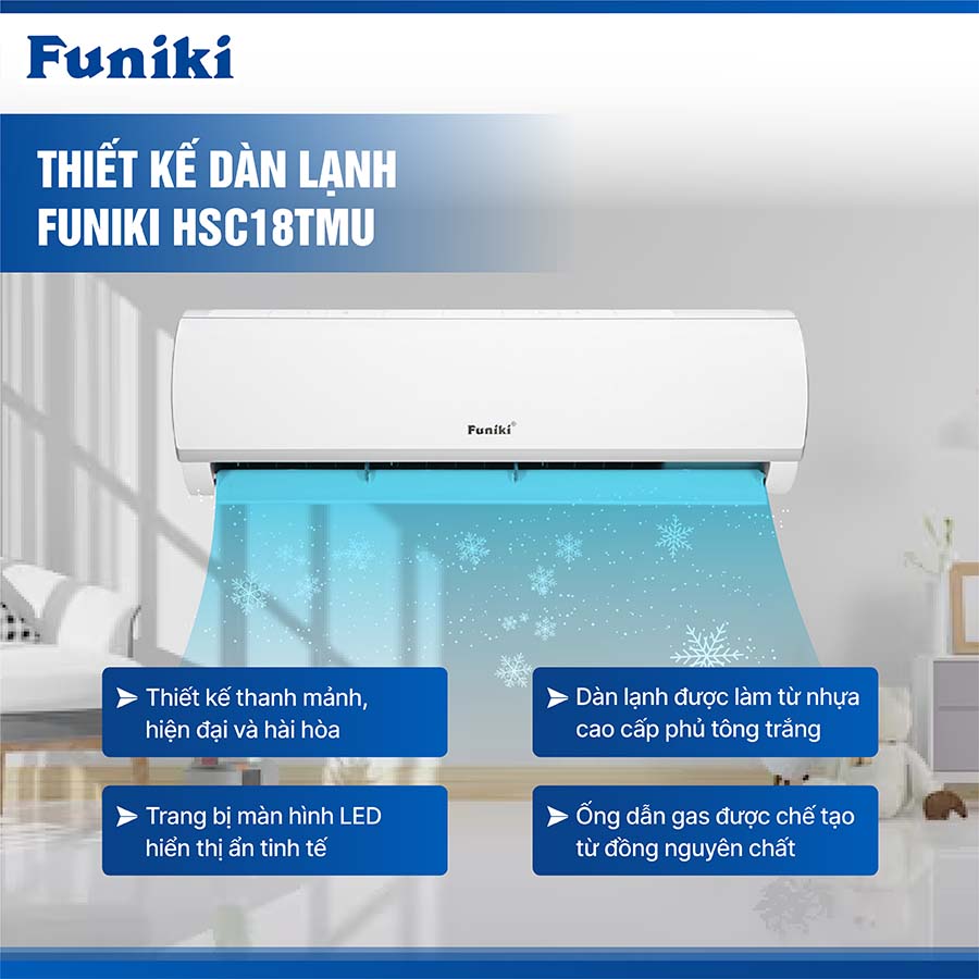 Nhờ thiết kế tinh giản và tính năng vượt trội, Funiki HSC18TMU không chỉ là một thiết bị làm mát mà còn là một món đồ trang trí góp phần tạo nên vẻ đẹp tổng thể của không gian sống hoặc làm việc.