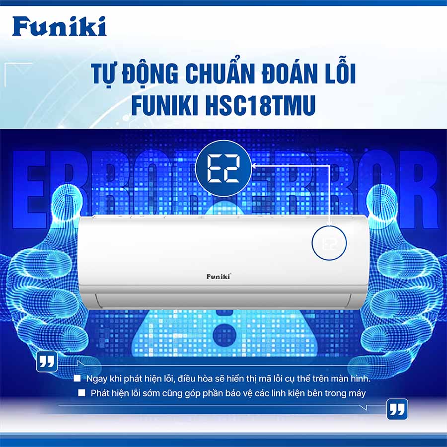 Với chức năng tự động báo lỗi, Funiki HSC18TMU không chỉ nâng cao hiệu quả sử dụng mà còn giúp người dùng duy trì thiết bị trong tình trạng hoạt động tối ưu, giảm thiểu các sự cố không mong muốn.
