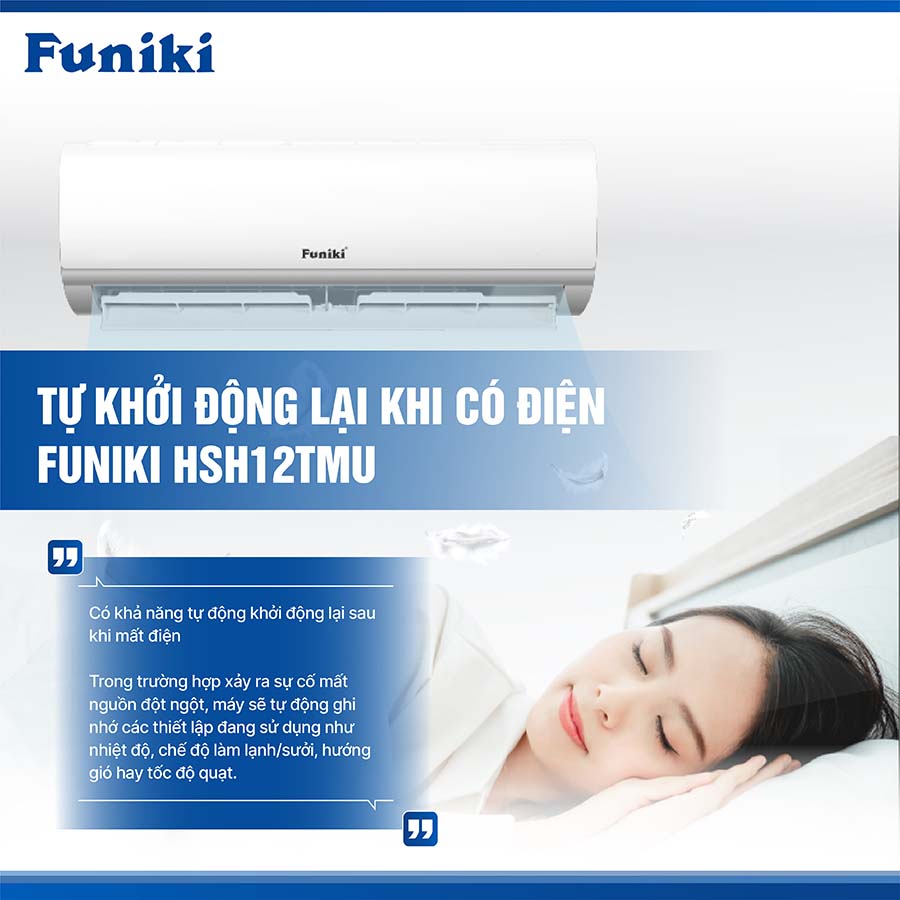 Đây là một tính năng hiện đại thường chỉ xuất hiện trên các dòng điều hòa cao cấp, nay đã được tích hợp trên Funiki HSH12TMU nhằm đem lại sự an tâm và thuận tiện tối đa cho người dùng.
