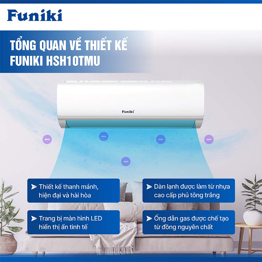Với thiết kế này, Funiki HSH10TMU không chỉ đảm bảo khả năng làm mát, sưởi ấm hiệu quả mà còn giúp tăng tuổi thọ máy, duy trì hiệu suất hoạt động tốt.