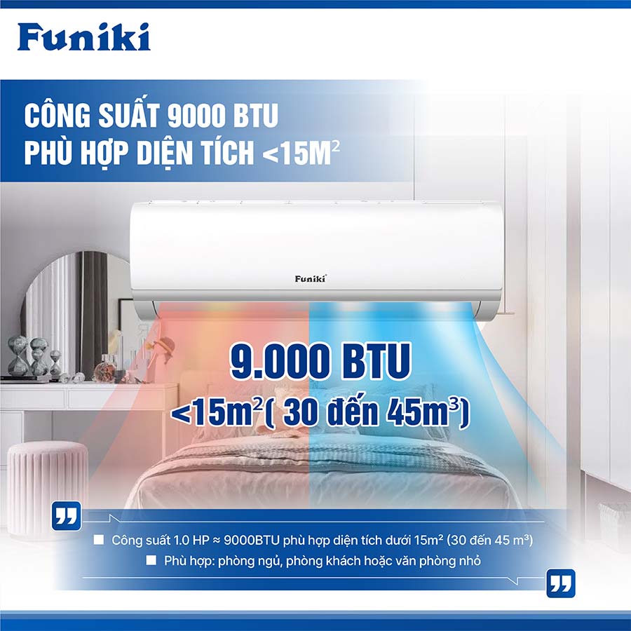 Với công suất 9000 BTU, chiếc điều hòa này phù hợp cho những không gian có diện tích dưới 15m², chẳng hạn như phòng ngủ, phòng khách hoặc văn phòng nhỏ. Khi sử dụng vào mùa hè, máy có thể làm lạnh nhanh chóng, còn vào mùa đông, tính năng sưởi ấm sẽ giúp duy trì một không gian ấm áp và dễ chịu.