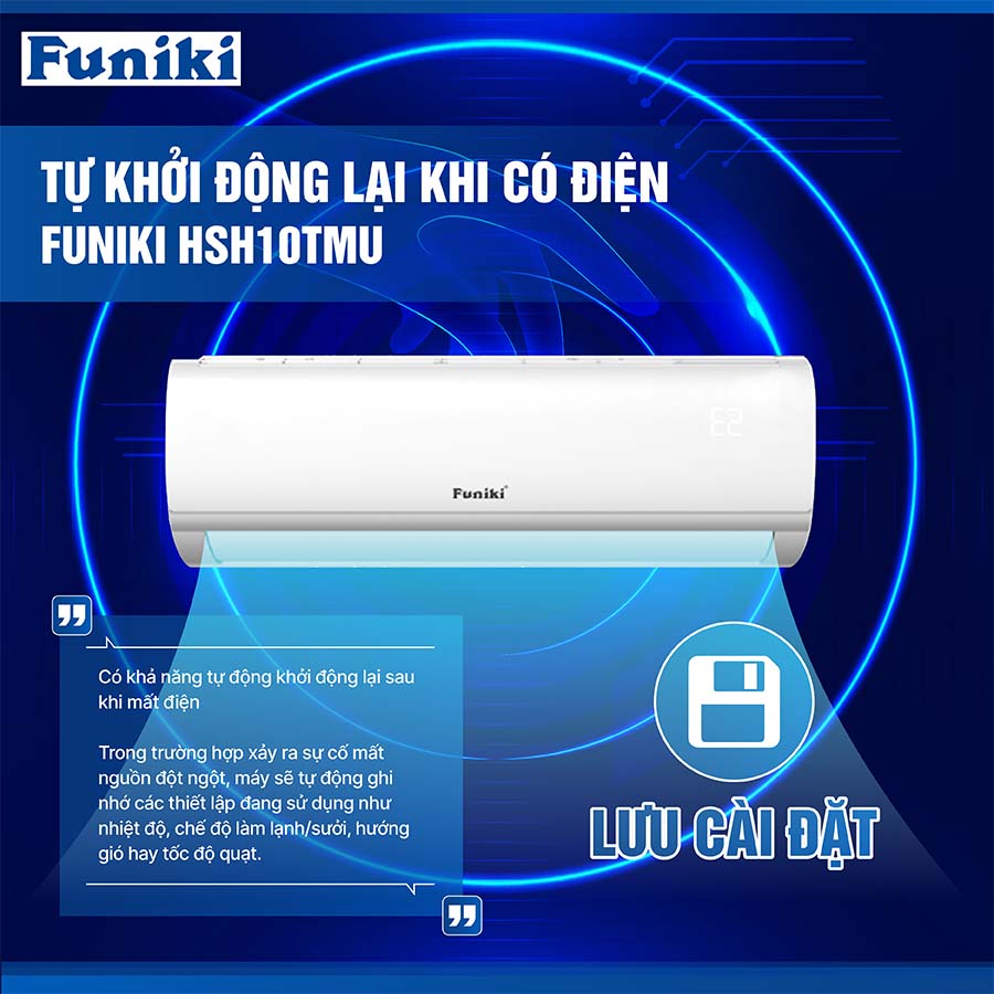 Tính năng này giúp người dùng tiết kiệm thời gian và công sức khi gặp sự cố mất điện. Khi nhà bạn bị mất điện, điều hòa sẽ tự động ghi nhớ các cài đặt hiện tại như nhiệt độ, hướng gió và các thiết lập khác mà bạn đã điều chỉnh trước đó.