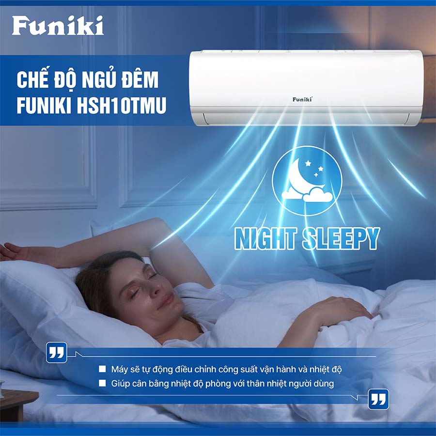 Khi kích hoạt chế độ này sẽ giúp cải thiện chất lượng giấc ngủ cho người sử dụng. Với chế độ ngủ đêm, máy sẽ tự động điều chỉnh công suất và nhiệt độ sao cho phù hợp với nhiệt độ ngoài trời và thân nhiệt của người dùng, tránh tình trạng quá lạnh hoặc quá nóng trong suốt đêm.