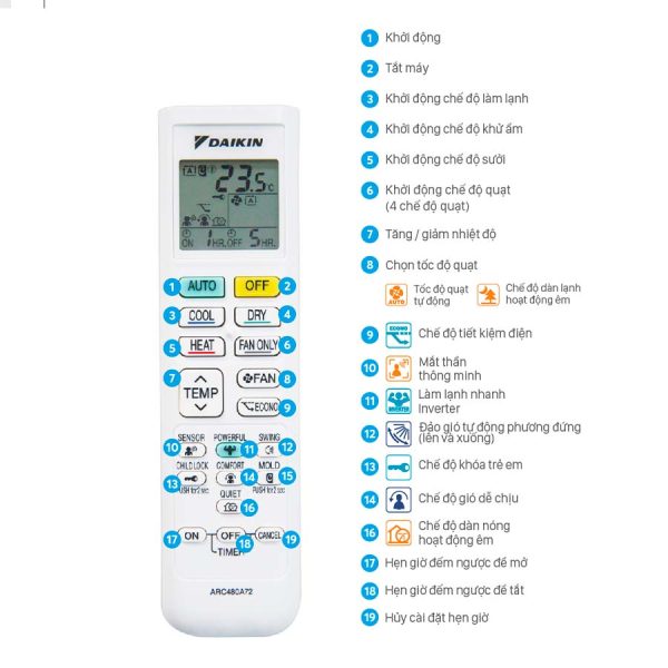 Ngoài thiết kế của điều hòa, remote điều khiển cũng được Daikin thiết kế lại hoàn toàn, không còn chỉ đơn giản là công cụ điều khiển, mà là một phần không thể thiếu trong trải nghiệm sử dụng. Với phối màu đen trắng tinh tế, remote trở thành một sản phẩm không chỉ tiện dụng mà còn có thể gây ấn tượng ngay từ cái nhìn đầu tiên. Sự kết hợp màu sắc này tạo nên vẻ ngoài thu hút, hiện đại, đồng thời dễ dàng tương thích với các phong cách nội thất khác nhau. Thiết kế mới của remote cũng chú trọng vào sự dễ dàng và trực quan trong việc thao tác, giúp người dùng cảm thấy thuận tiện và thoải mái trong suốt quá trình sử dụng.