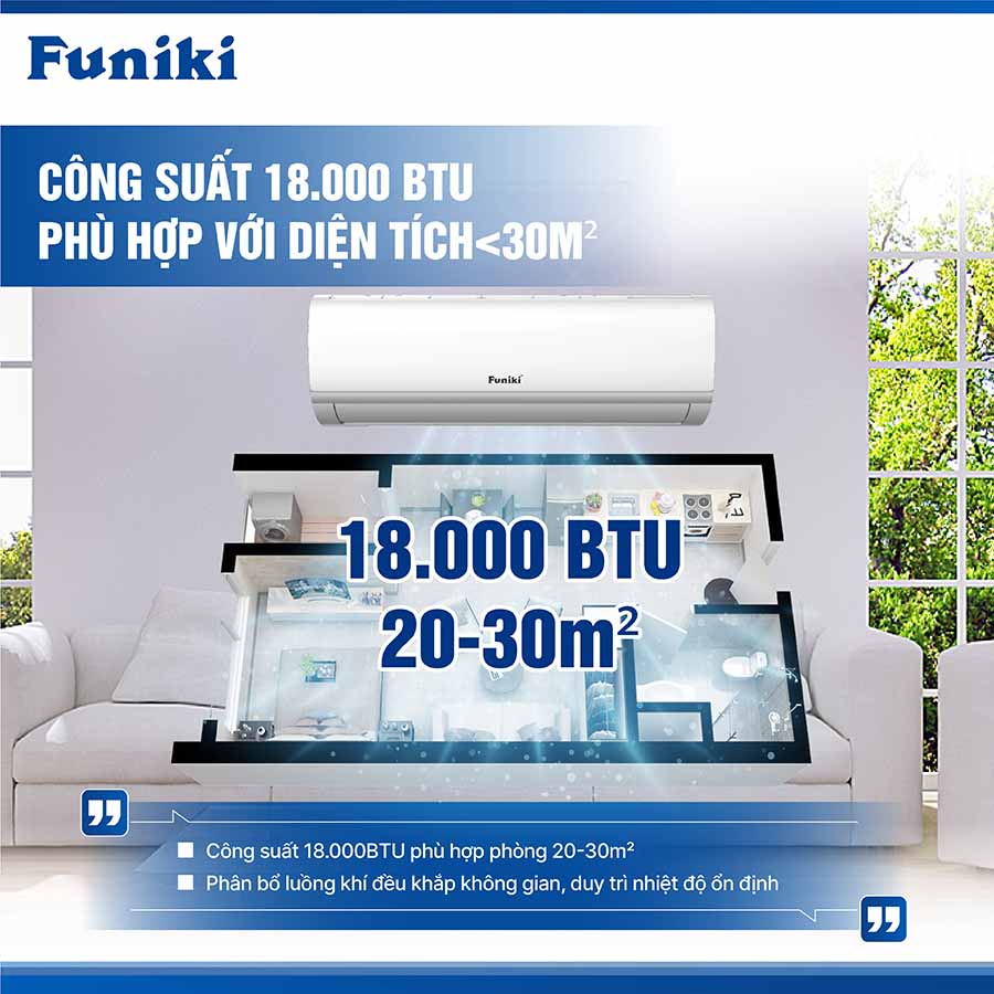 Công suất 18.000 BTU phù hợp cho không gian diện tích dưới 30m²