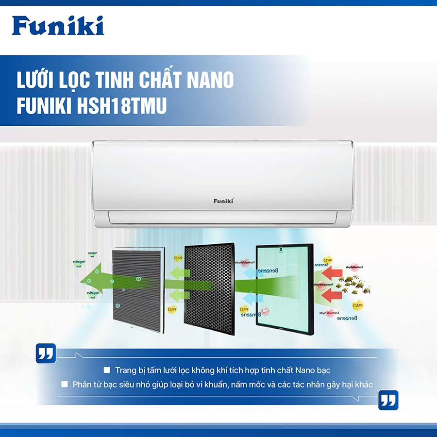 Nhờ áp dụng môi chất lạnh R32, điều hòa Funiki HSH18TMU không chỉ làm mát hiệu quả mà còn thể hiện cam kết vì sức khỏe người tiêu dùng và môi trường sống xanh.