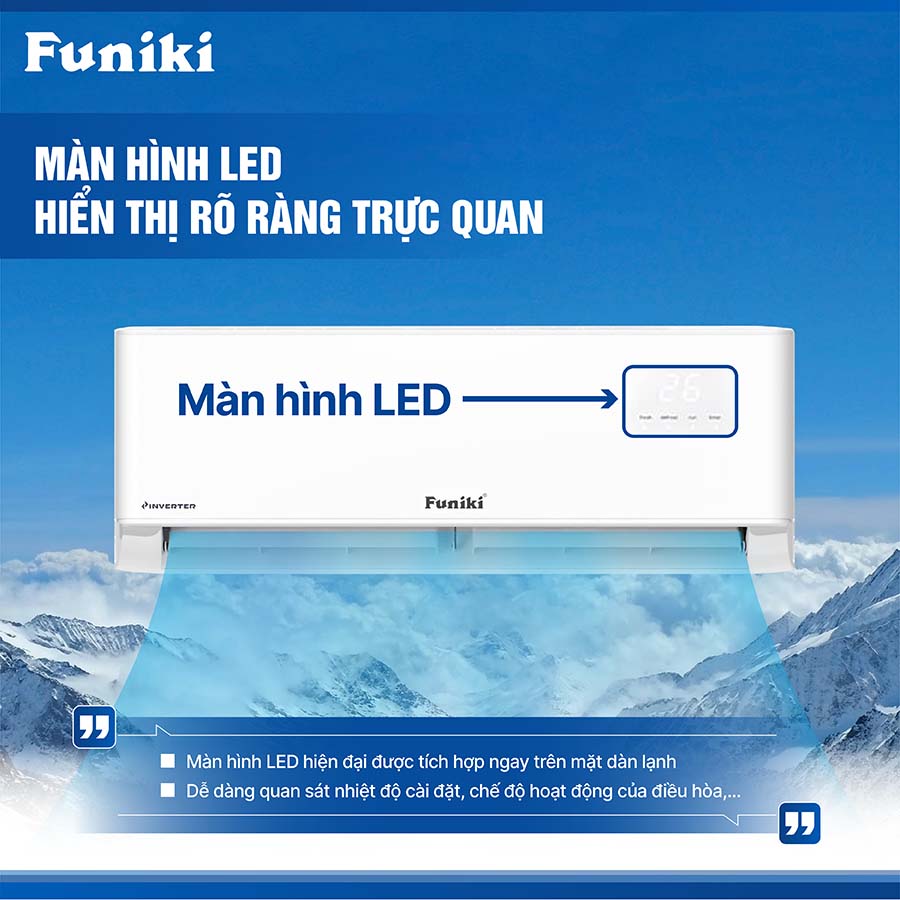 Điều hòa Funiki HIC24TMU được tích hợp hệ thống tự chẩn đoán lỗi thông minh, cho phép thiết bị theo dõi liên tục trạng thái hoạt động của các bộ phận bên trong. Khi phát hiện ra bất thường, máy sẽ tự động ngắt hoạt động nếu cần thiết để đảm bảo an toàn, đồng thời hiển thị mã lỗi cụ thể lên màn hình LED giúp người dùng nhanh chóng nhận biết.