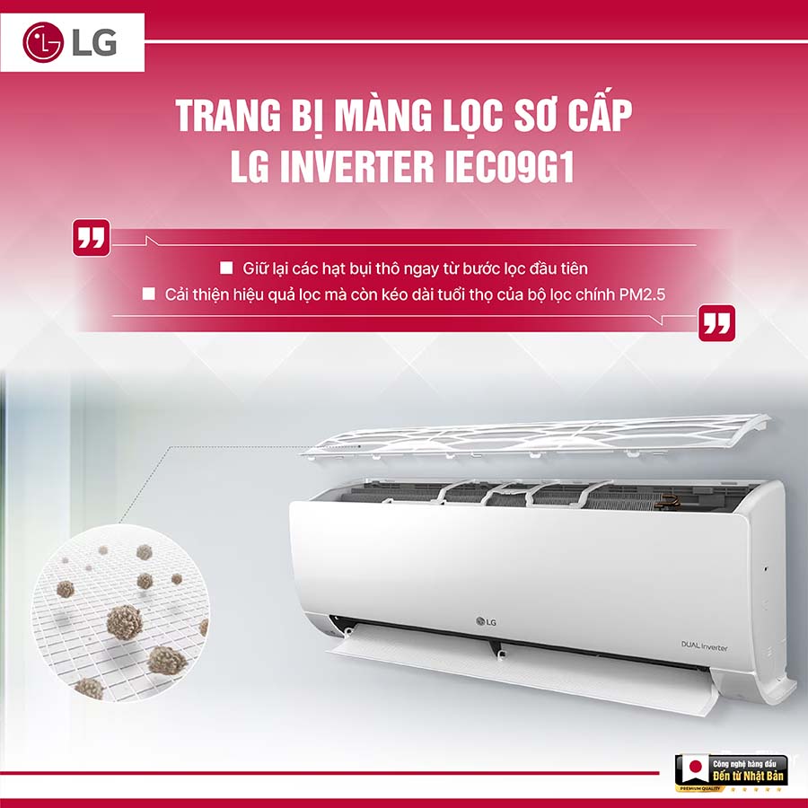 Nhờ thiết kế màng lọc sơ cấp tinh tế, LG Inverter 1 HP IEC09G1 không chỉ mang đến làn gió mát trong lành ngay từ giây phút khởi động, mà còn giúp gia chủ yên tâm về độ bền và chi phí vận hành. Đây chính là lý do mà chiếc điều hòa này luôn được đánh giá cao trong việc cân bằng giữa hiệu quả lọc không khí, tiết kiệm điện và trải nghiệm thoải mái suốt cả mùa hè.