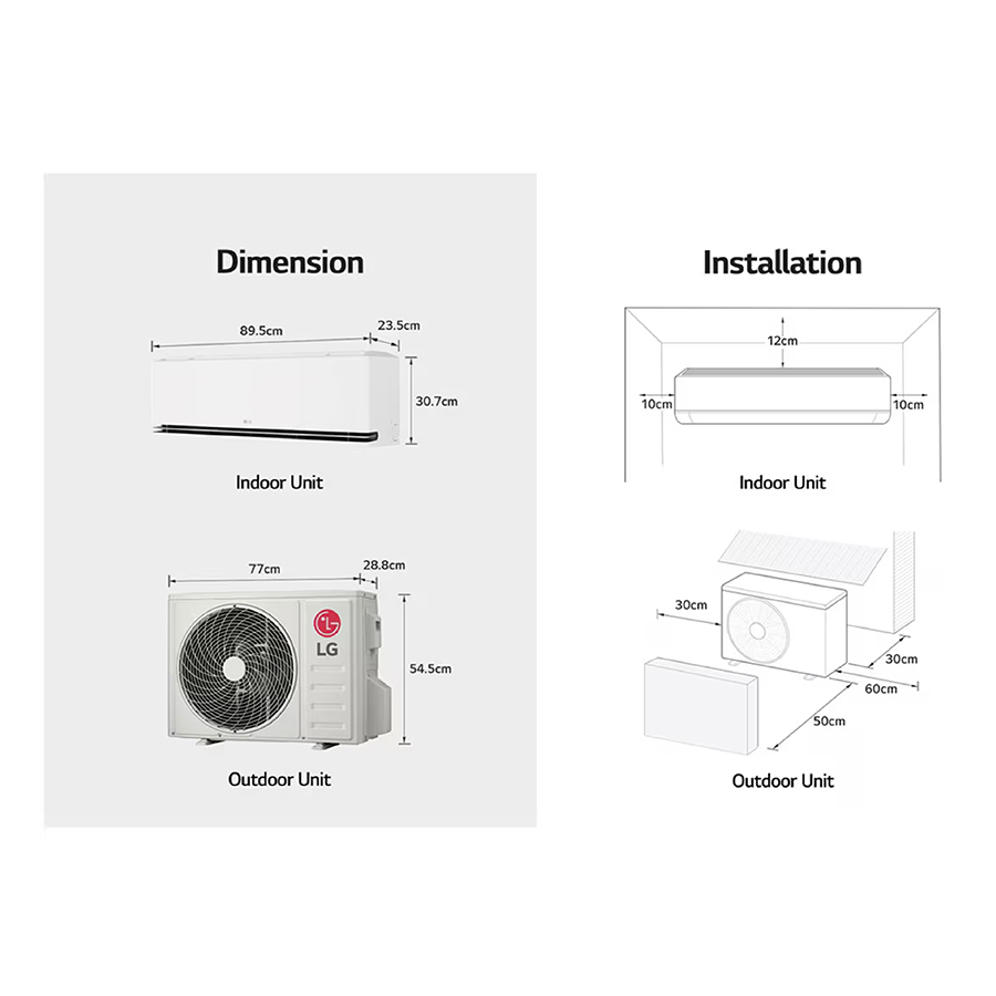 • Kích thước dàn lạnh (DxCxS): 89.5 x 30.7 x 23.5 cm