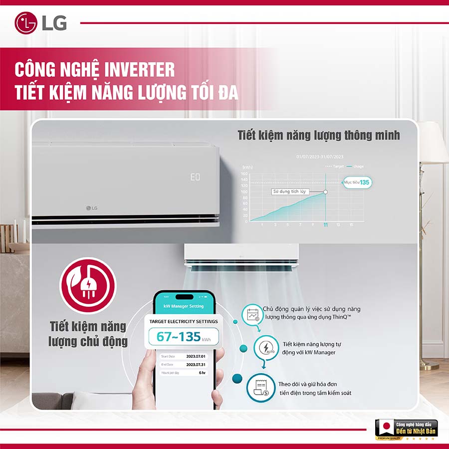 • Công nghệ tiết kiệm điện: Dual inverter; Kw Manager; Energy Ctrl