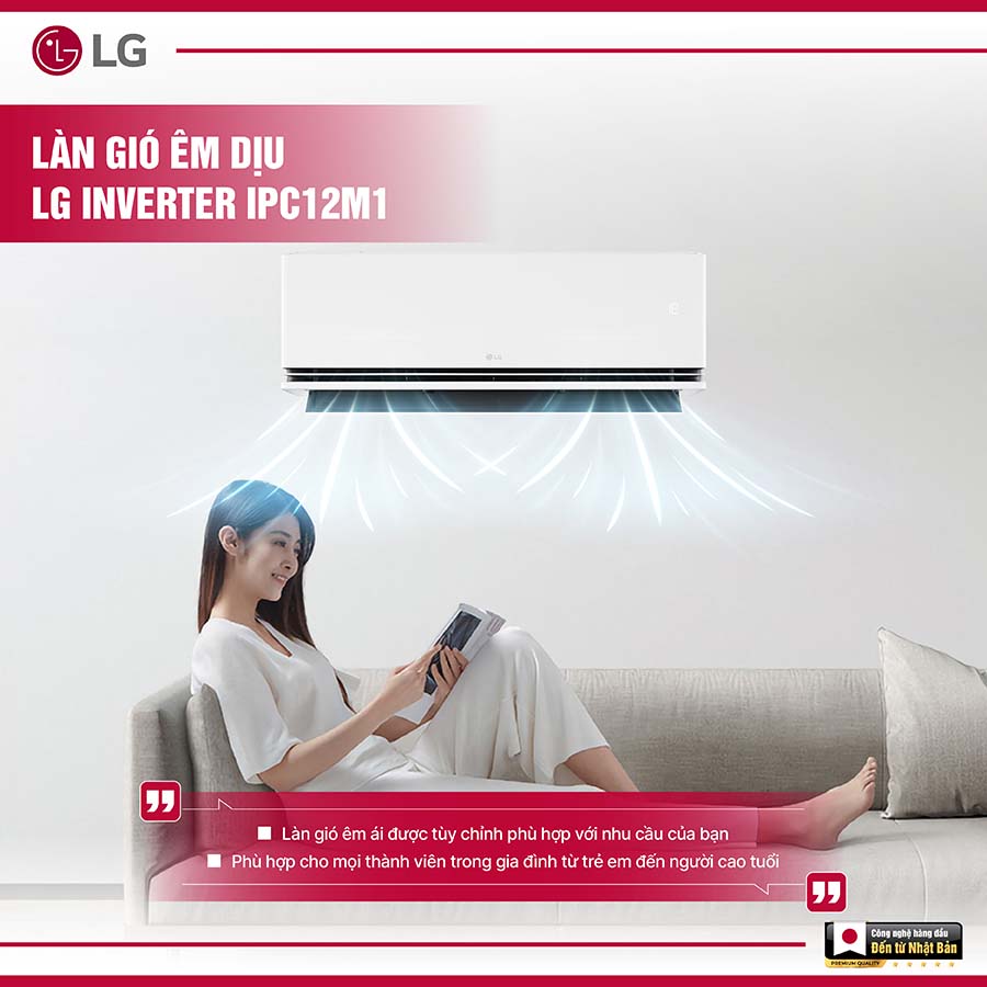 Cánh vẫy kép Dual Vane giúp tối ưu luồng gió ở mọi nhiệt độ, kết hợp với công nghệ Dual Inverter và tính năng Energy Ctrl kiểm soát năng lượng hiệu quả, LG IPC12M1 chính là lựa chọn lý tưởng cho không gian sống hiện đại, tiện nghi.