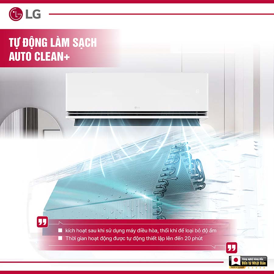 – Tự làm sạch dàn lạnh bằng công nghệ đóng băng – rã đông, giúp loại bỏ bụi bẩn bám trên dàn, sau đó hong khô để hạn chế ẩm mốc và vi khuẩn, đảm bảo luồng không khí luôn trong lành và an toàn cho sức khỏe.