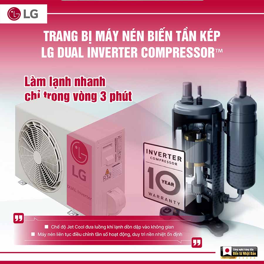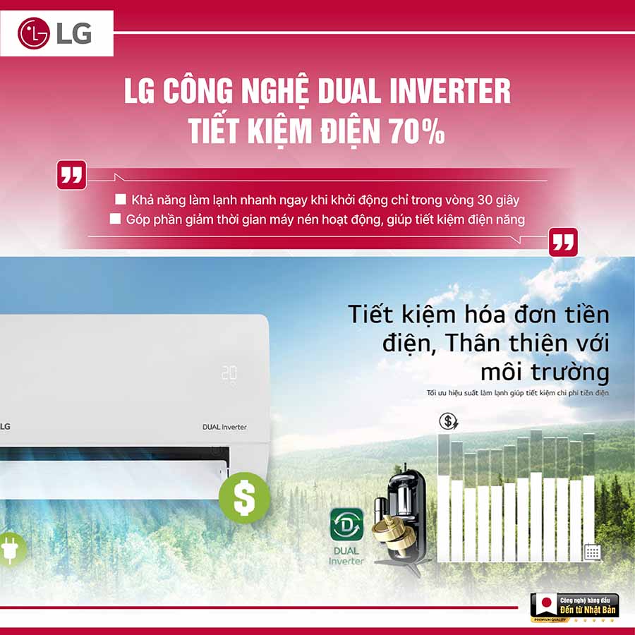 LG công nghệ dual inverter tiết kiệm điện 70%
