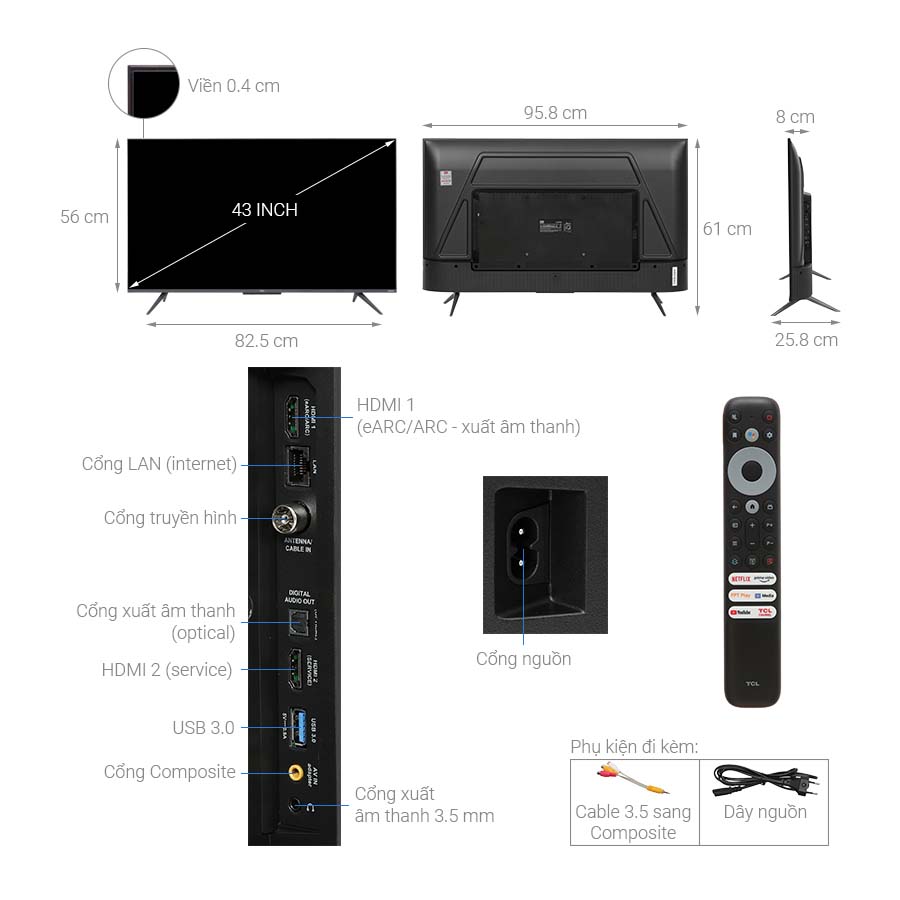Google Tivi QLED TCL 4K 43 inch 43Q636