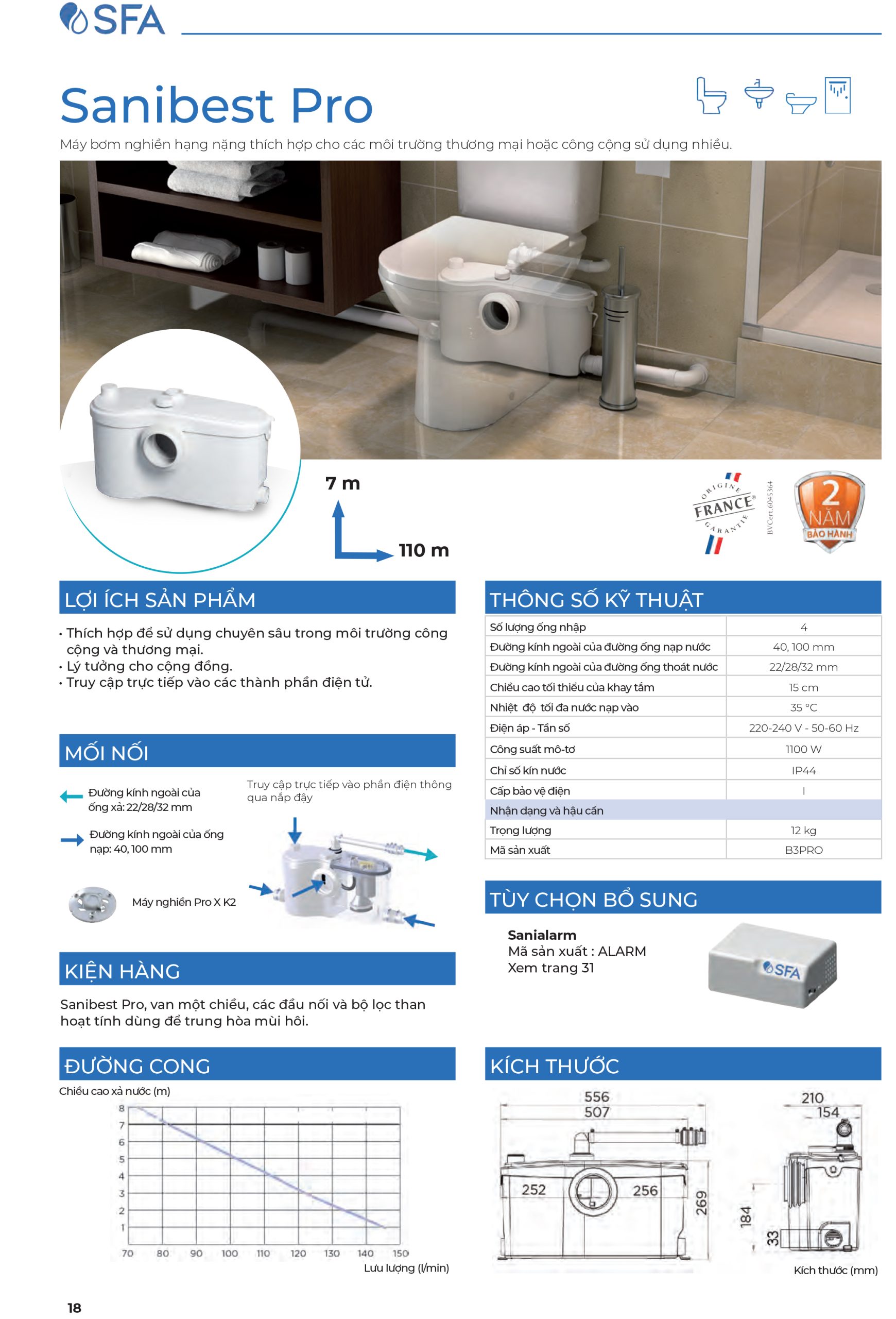 • Bơm nước thải lên đến 5 m theo chiều dọc hoặc 100 m theo chiều ngang.