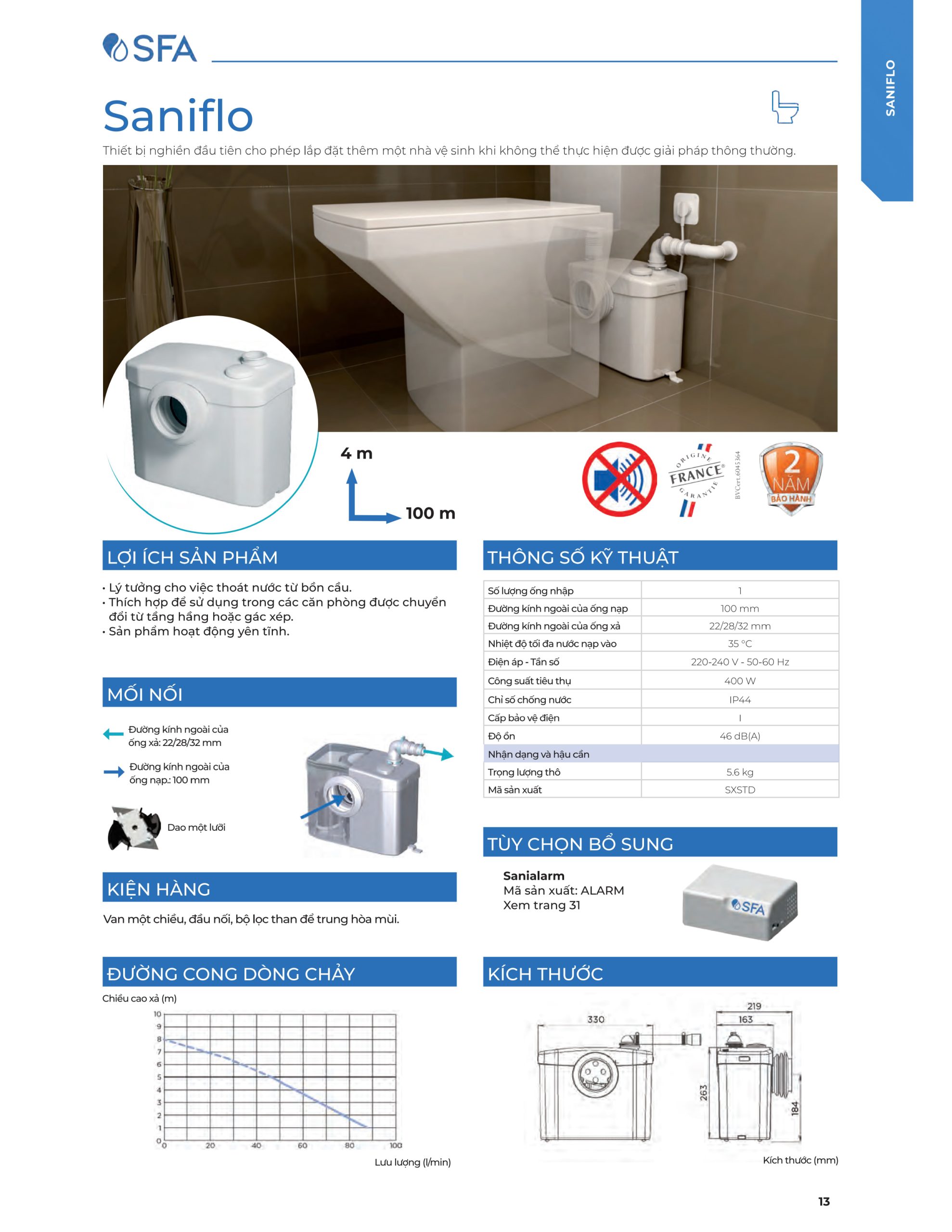 • Model: SFA Saniflo ( sử dụng 1 thiết bị )