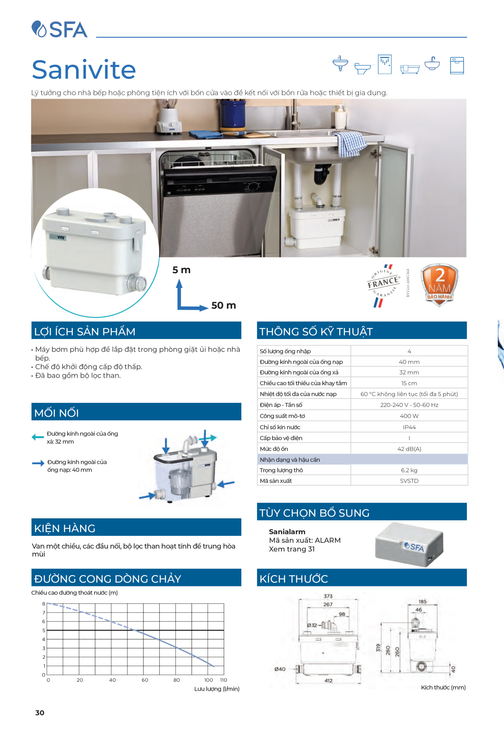 • Bơm nước thải lên đến 5 m theo chiều dọc hoặc 100 m theo chiều ngang.