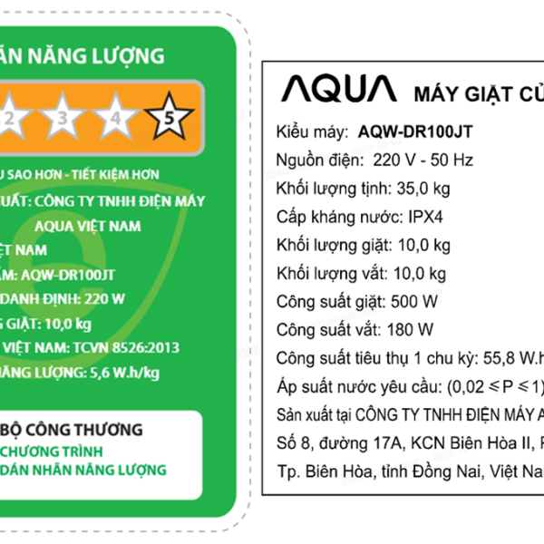 - Khối lượng giặt 10 kg phù hợp với gia đình 5 – 7 thành viên.