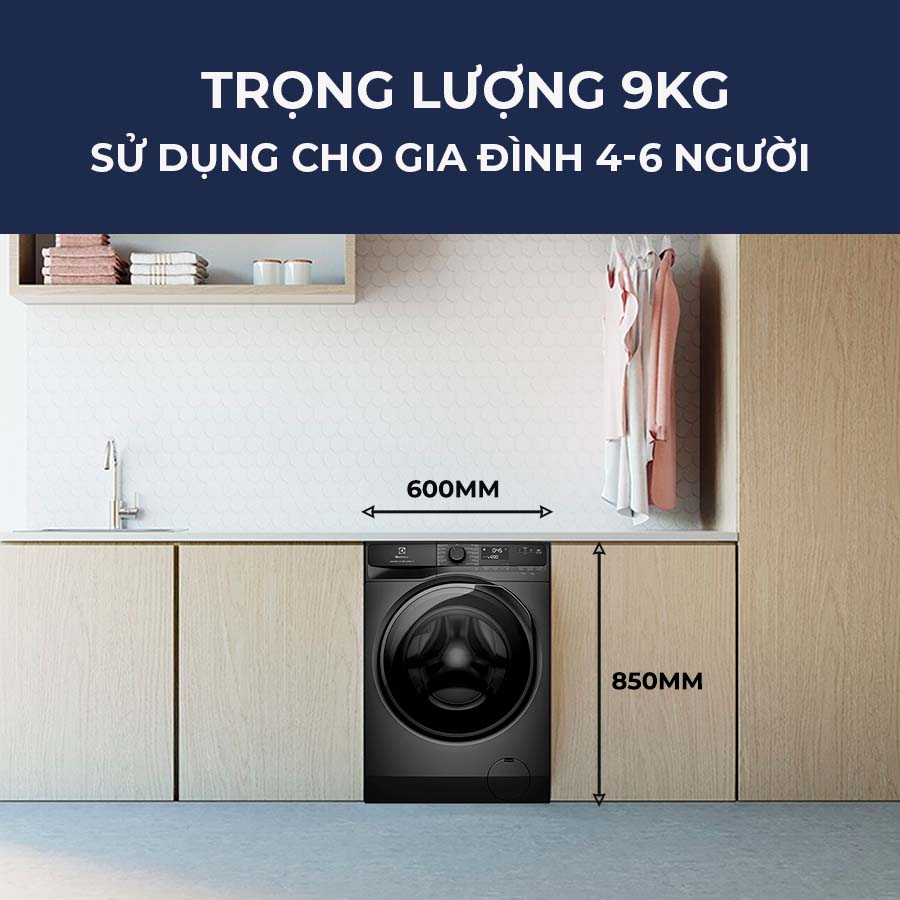• Khối lượng giặt: 9 Kg