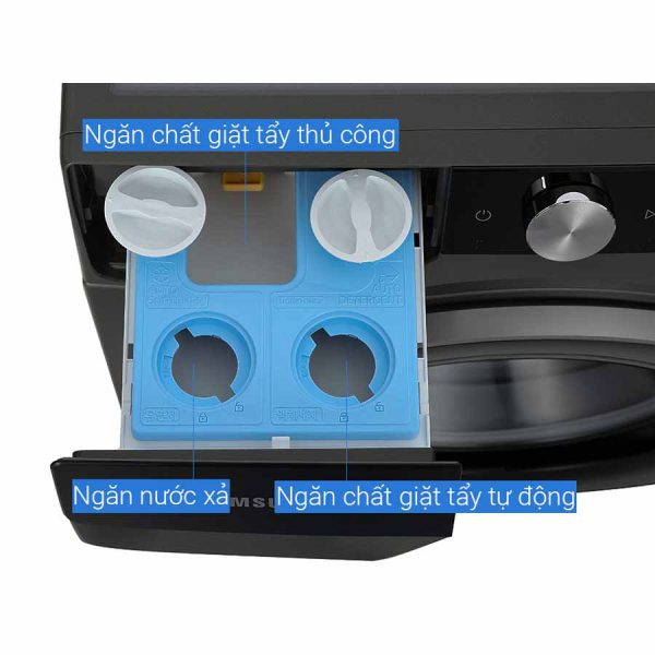 • Tiết kiệm thời gian cho người sử dụng: Thay vì phải đong nước giặt và nước xả mỗi lần giặt, bạn chỉ cần đổ đầy một lần vào khay chứa và có thể sử dụng trong khoảng thời gian dài (tùy thuộc vào số lượng giặt của gia đình). Đây là một tính năng vô cùng tiện lợi, giúp bạn không phải lo lắng về việc đo đếm hoặc bổ sung nước giặt, tiết kiệm thời gian đáng kể khi giặt đồ.