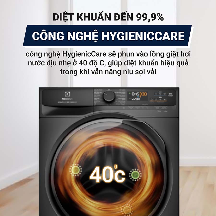 Diệt khuẩn đến 99,9% sau mỗi lần giặt, bảo vệ sức khỏe cả gia đình