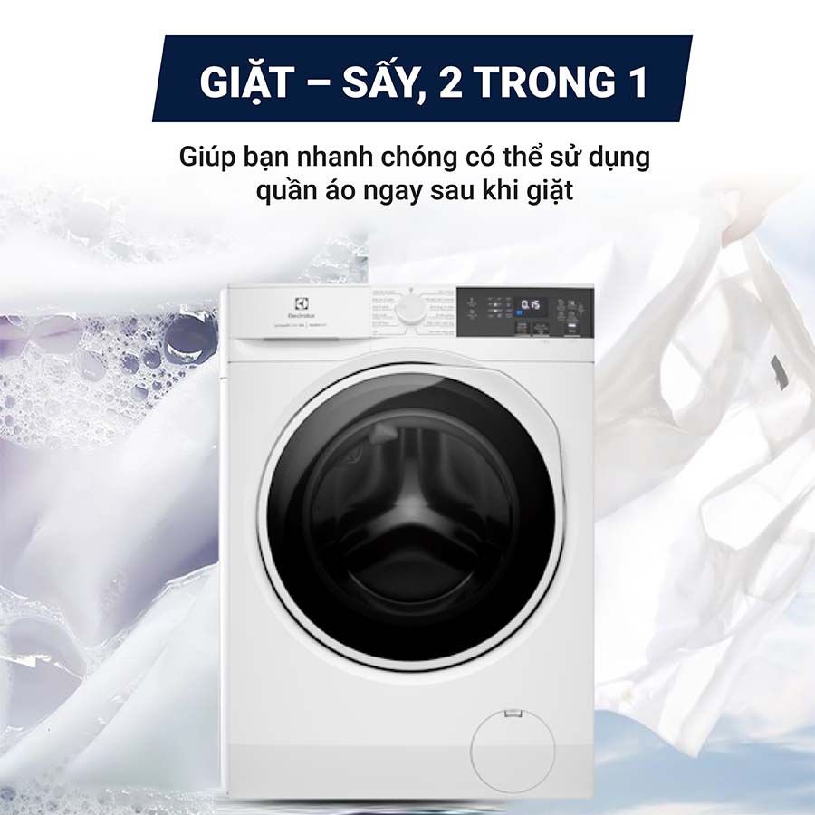Electrolux EWW9024P3WC3 được tích hợp hai chức năng giặt và sấy trong cùng một thiết bị, giúp người dùng tiết kiệm chi phí mua sắm và không gian lắp đặt. Đây là lựa chọn lý tưởng cho những gia đình sống tại căn hộ, nhà phố hoặc nơi có diện tích phơi phóng hạn chế, đặc biệt hữu ích trong mùa mưa ẩm hoặc thời tiết lạnh.