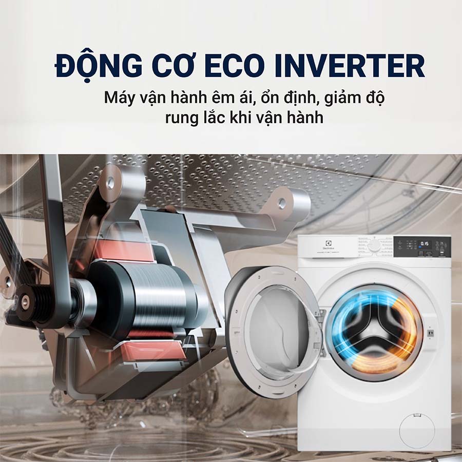Bên cạnh đó, máy còn ứng dụng công nghệ EcoInverter tiên tiến, giúp giảm thiểu tiếng ồn và rung động khi vận hành, đồng thời tối ưu hóa mức tiêu thụ điện năng. Nhờ vậy, máy hoạt động không chỉ êm ái mà còn rất tiết kiệm điện, giúp giảm chi phí sinh hoạt đáng kể cho gia đình.