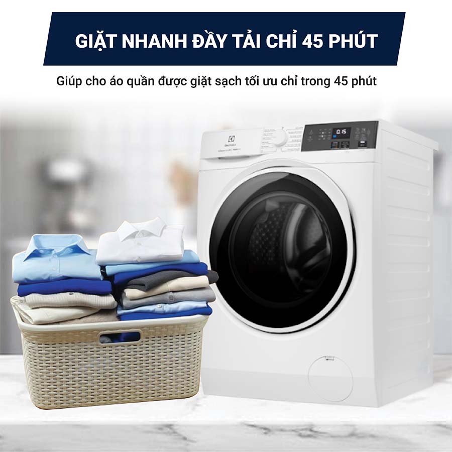 Đặc biệt, FullWash 45 còn cho phép giặt với tải trọng tối đa 9 kg, phù hợp cho nhu cầu giặt giũ của cả gia đình đông thành viên hoặc những lúc bạn cần xử lý lượng lớn quần áo trong thời gian ngắn.
