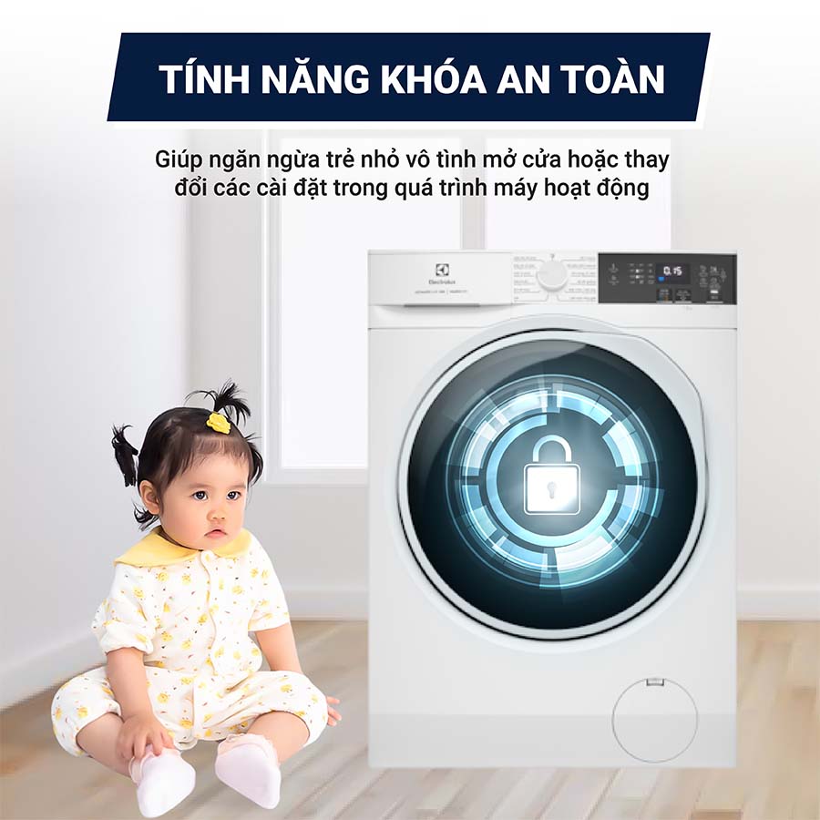 Khóa trẻ em: Khi bật tính năng này, các phím chức năng trên máy sẽ tự động khóa lại, giúp ngăn ngừa trẻ nhỏ vô tình thao tác hoặc nghịch phá gây ra những nguy hiểm không mong muốn trong quá trình máy hoạt động. Đây là tính năng rất quan trọng đảm bảo an toàn cho gia đình có trẻ nhỏ.
