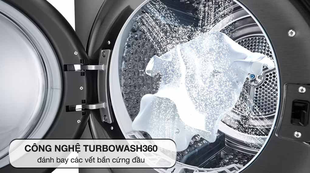 Công nghệ TurboWash™360° sẽ dựa trên khối lượng quần áo để điều chỉnh lượng nước phù hợp. Nhờ vậy tối ưu thời gian giặt xả cũng như thời gian sấy khô sau đó. Quần áo sẽ được làm sạch mà vẫn đảm bảo giữ được độ bền của vải.