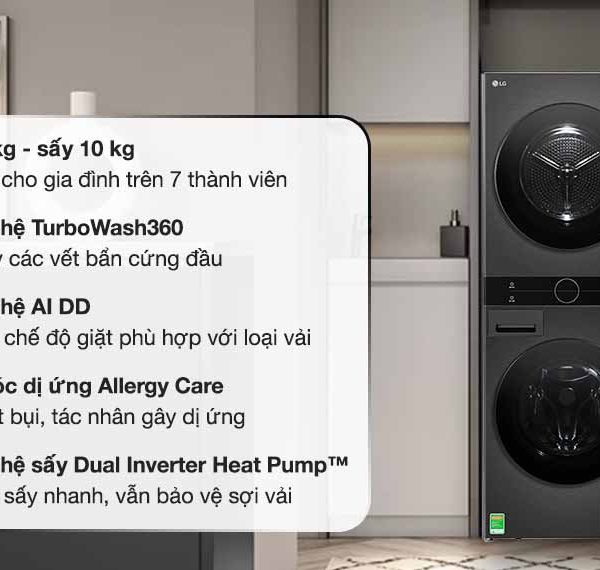 Với các thiết kế thông thường, khi chồng máy sấy lên máy giặt sẽ không tránh khỏi việc hai dàn máy bị va chạm với nhau trong quá trình hoạt động gây ra tiếng ồn khá lớn. Còn máy giặt sấy LG được thiết kế liền khối giúp hạn chế tối đa hiện tượng này. Công nghệ Dual Inverter đảm bảo hiệu quả hoạt động êm ái hơn, tránh gây tiếng ồn lớn ảnh hưởng đến thời gian nghỉ ngơi, thư giãn của gia đình.
