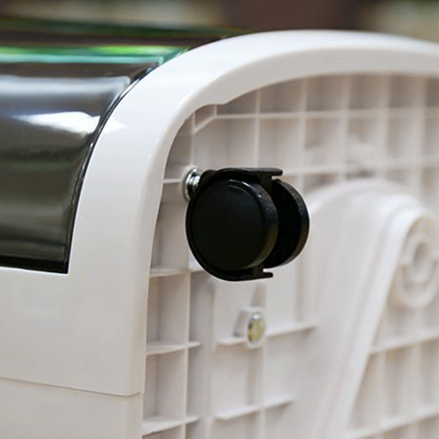 Thậm chí máy hút ẩm còn được trang bị 4 bánh xe đảo chiều dưới đế giúp bạn dễ dàng di chuyển khắp nơi trong căn hộ. Ngoài ra, bạn cũng có thể tự tay bê chiếc máy lên tầng hai, tầng ba mà không hề quá mất sức, chiếc máy chỉ nặng tương đương một em bé học cấp 1 thôi nhé.