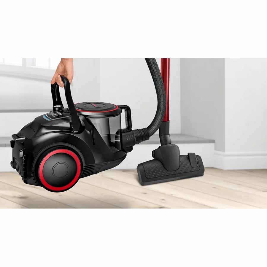 Thiết kế đẹp, sang trọng, tiện ích thôi chưa đủ, lực hút mới là điều khiến BGS41POW1 chinh phục người tiêu dùng. Với động cơ phản lực công suất lớn lên đến 700W, công nghệ hút dạng xoáy tạo ra lực hút mạnh do đó máy có khả năng đánh bay mọi bụi bẩn, tóc vương, lông thú cưng, rác, mảnh vụ thức ăn… trên mọi bề mặt, kể cả các bề mặt khó nhằn như thảm, bề mặt vải và những nơi khó tiếp cận.