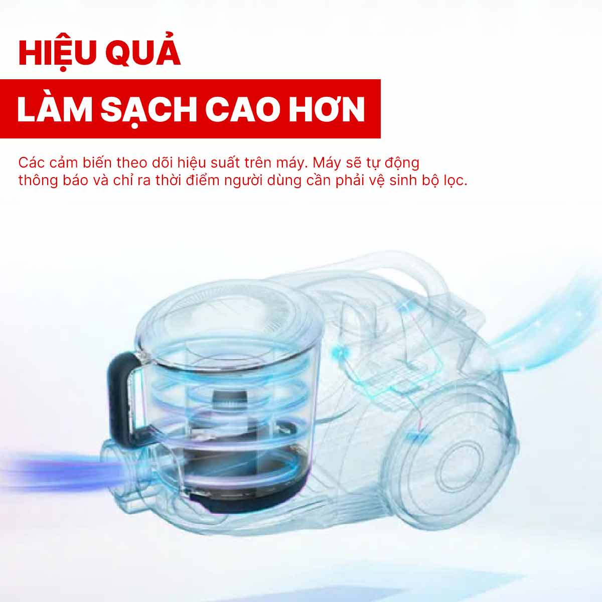 BGS41POW1 được thiết kế đặc biệt mang lại hiệu quả làm sạch cao hơn nhờ các cảm biến theo dõi hiệu suất trên máy. Máy sẽ tự động thông báo và chỉ ra thời điểm người dùng cần phải vệ sinh bộ lọc từ đó giúp không khí đẩy ra bên ngoài luôn được đảm bảo chất lượng.