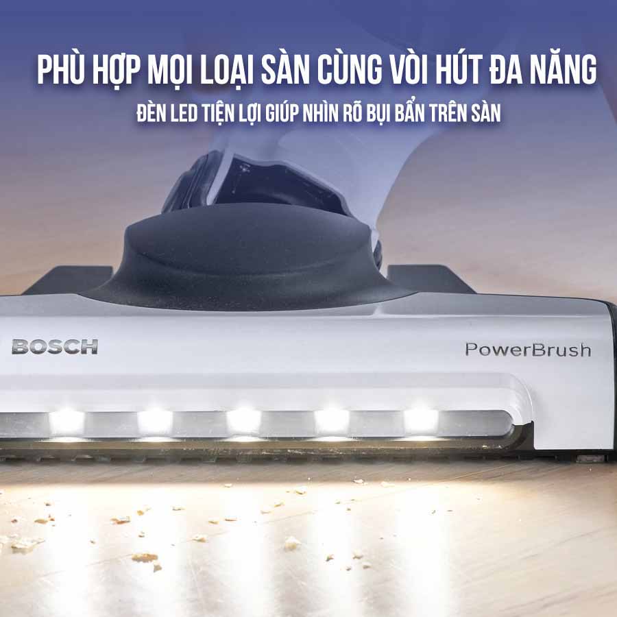 Với những tính năng vượt trội của đầu hút đa năng có đèn LED, máy hút bụi Bosch BCH3P2301 không chỉ giúp làm sạch hiệu quả trên nhiều loại sàn mà còn mang đến trải nghiệm vệ sinh dễ dàng, tiện lợi cho người dùng.