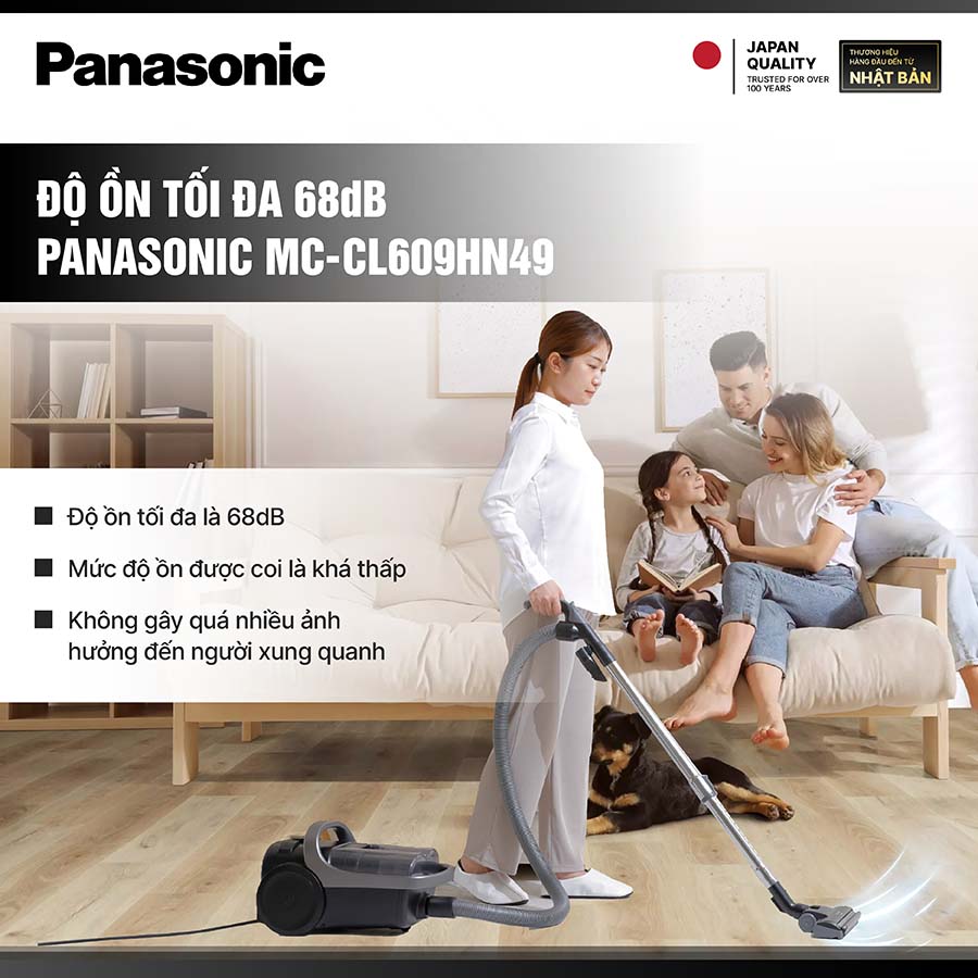 Nhờ sự cân bằng giữa hiệu suất hút mạnh mẽ và tiếng ồn thấp, Panasonic MC-CL609HN49 mang đến trải nghiệm vận hành êm ái nhưng vẫn đảm bảo hiệu quả làm sạch tối đa.