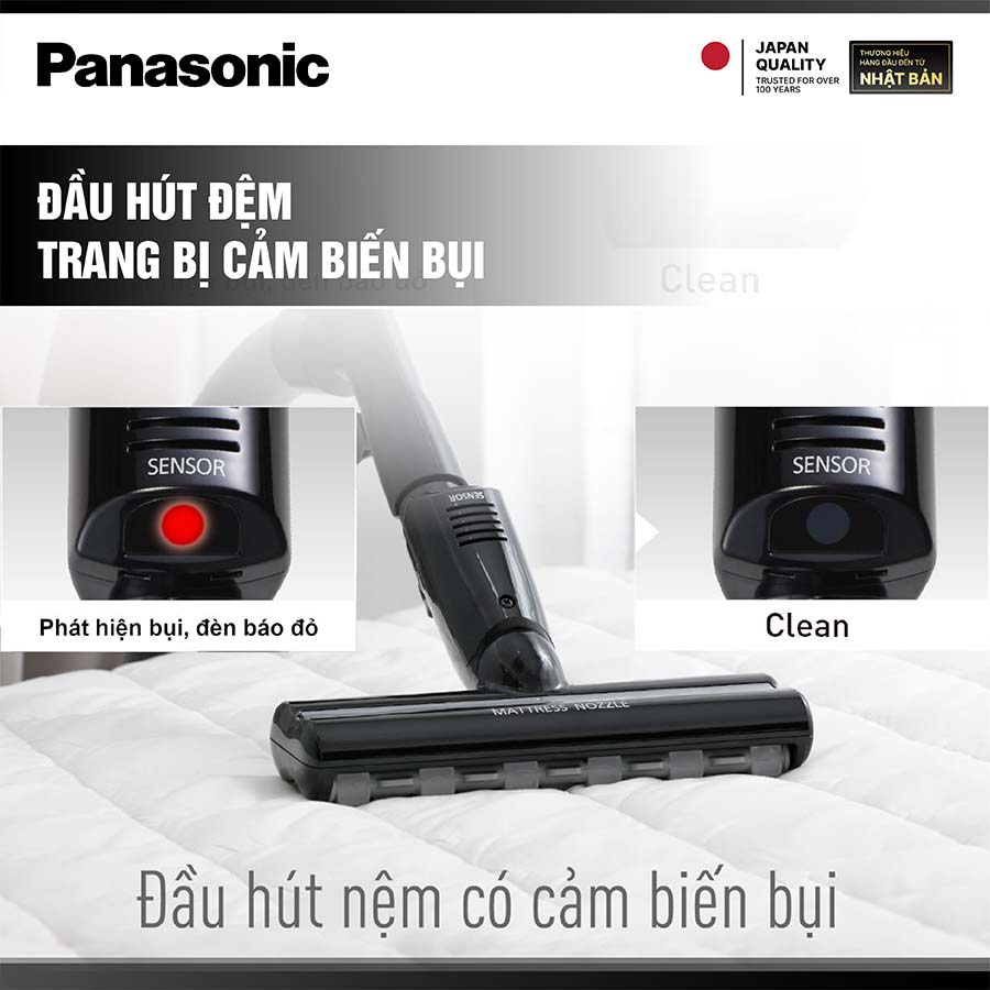 Máy hút bụi Panasonic có công suất hoạt động lên đến 2200W, thuộc phân khúc máy hút bụi công suất cao, giúp tạo ra lực hút mạnh và ổn định. Điều này đảm bảo khả năng làm sạch tối ưu ngay cả với bụi bẩn cứng đầu, tóc, lông thú cưng hay các mảnh vụn nhỏ trên sàn.