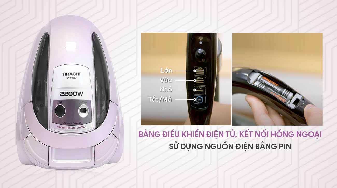 Máy hút bụi Hitachi CV-SU22V 24CV có động cơ hoạt động với công suất lên tới 2200W cùng chức năng gió thổi mạnh, cho lực hút cao mang đến kết quả làm sạch hiệu quả và tuyệt vời.