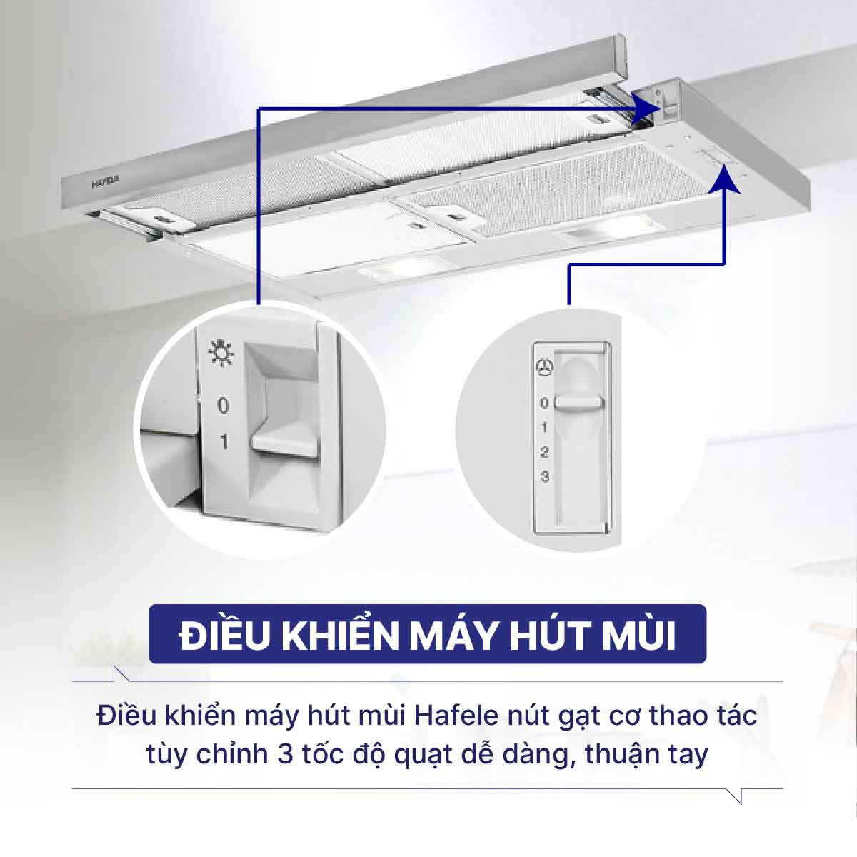 Điều khiển máy hút mùi Hafele nút gạt cơ thao tác tùy chỉnh 3 tốc độ quạt dễ dàng, thuận tay