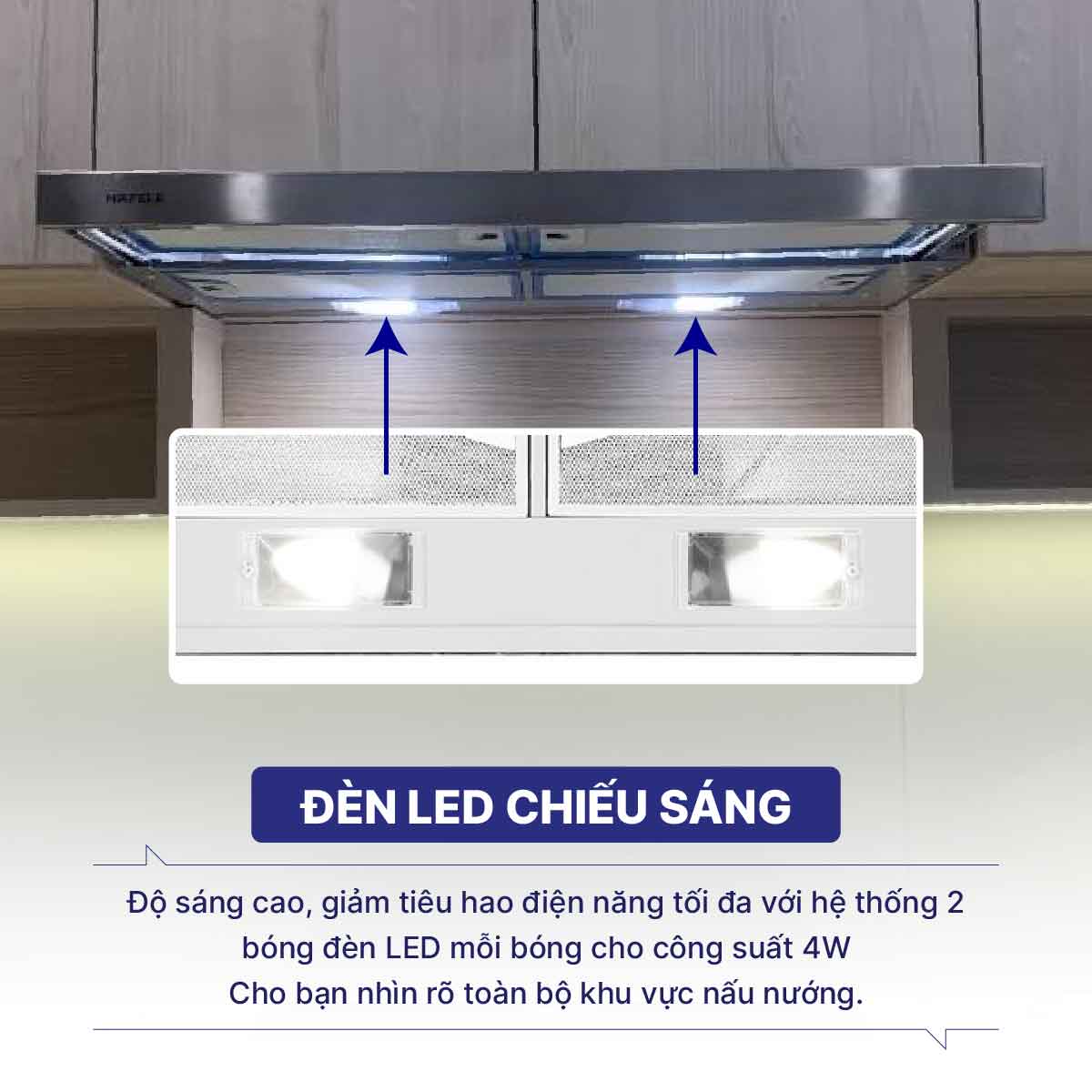 Độ sáng cao, giảm tiêu hao điện năng tối đa với hệ thống 2 bóng đèn LED mỗi bóng cho công suất 4W
