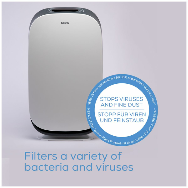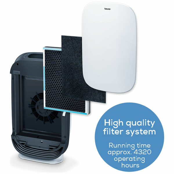Máy lọc không khí được kiểm soát qua ứng dụng wifi hiện đại theo công nghệ 4.0 với hiệu suất lọc lên đến 99,95% bằng hệ thống làm sạch không khí với hệ thống 3 lớp gồm có bộ lọc than hoạt tính, bộ lọc sơ bộ và bộ lọc HEPA. Chính thiết kế 3 màng lọc sẽ khiến Máy lọc không khí Beurer LR500 có thể lọc sạch không khí và loại bỏ đi những bụi bẩn. Ngoài ra, máy lọc còn được thiết kế cảm biến nhận biết được bụi mịn với kích thước rất nhỏ gây ảnh hưởng đến hệ hô hấp.