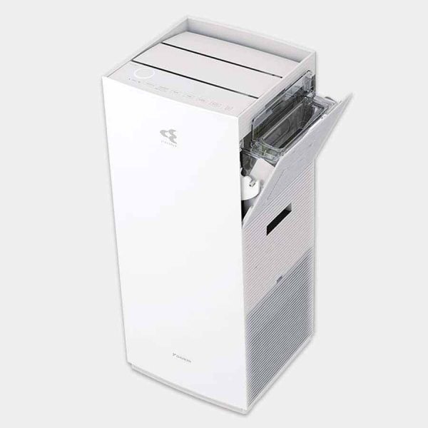 • Máy lọc không khí Daikin này sở hữu thiết kế gọn, sang trọng, sử dụng hiệu quả trong phạm vi phòng 48m2. Sản phẩm có trang bị bình chứa nước dung tích khoảng 3.4 lít với khả năng tạo ẩm 700 ml/h.